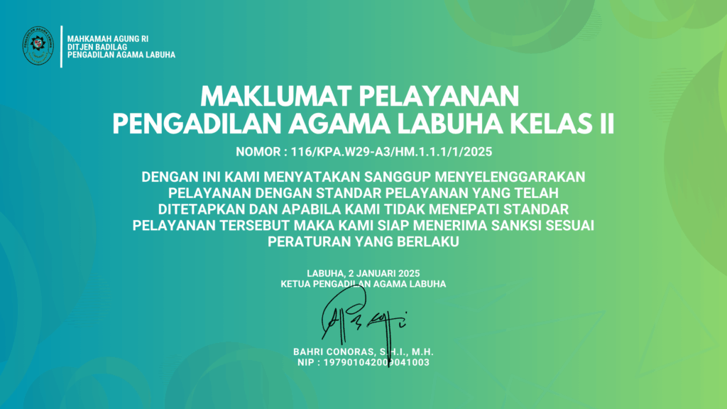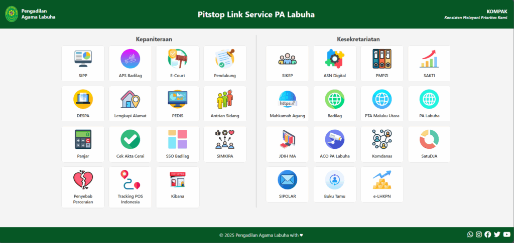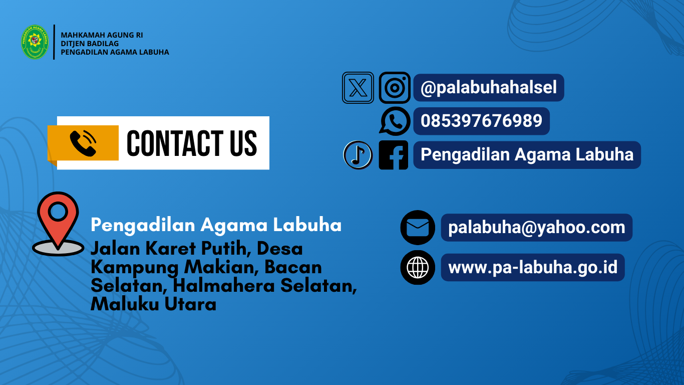 di website resmi Pengadilan Agama Labuha. Website ini dibuat sebagai sarana untuk memberikan beragam informasi khususnya yang berkaitan dengan tugas pokok dan fungsi Pengadilan Agama Labuha.